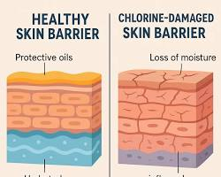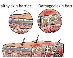 This illustration shows the skin’s surface under high magnification. It highlights how the protective lipid layer cracks after exposure to toxic pigments and frequent washing, leading to moisture loss and sensitivity.